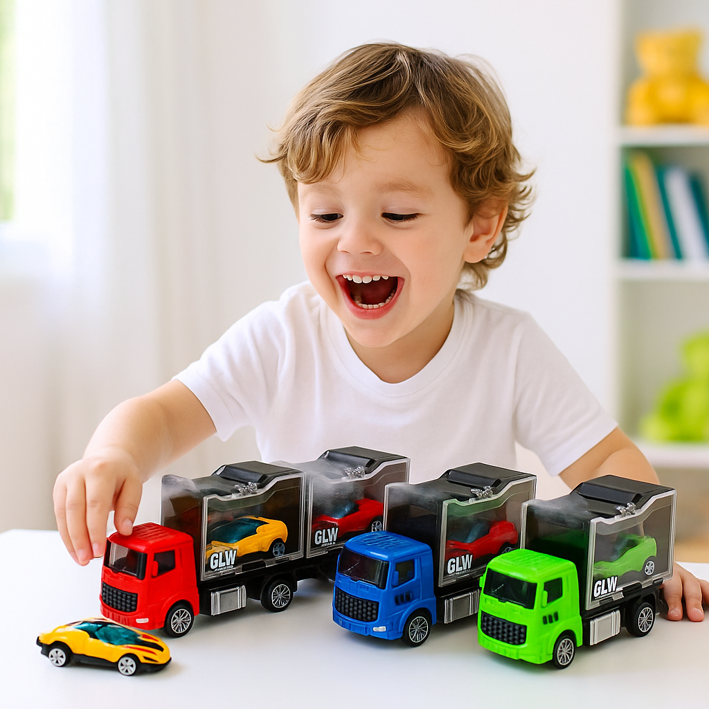 Kamion šleper sa sportskim autićem predstavlja kombinaciju zabave i edukativne vrednosti za malu decu. Ovaj set od dva vozila izrađen je od kvalitetnih metalnih elemenata sa realističnim detaljima koji potiču maštu i kreativnost. Kamion u razmeri 1:55 sa platformom za prevoz omogućava raznovrsne scenarije igre, dok čvrsti delovi osiguravaju dugotrajnost. Idealan je poklon za razvoj fine motorike i imaginativne igre, a odmah je spreman za upotrebu bez dodatne pripreme.