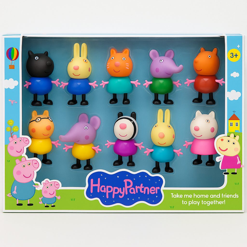 Pepa Prase figurice – set od 10 likova iz omiljenog crtanog filma. Svaka figurica je izrađena od kvalitetnog materijala sa živim bojama i prepoznatljivim dizajnom. Idealne za razvijanje mašte, socijalnih veština i kreativnosti kroz igru. Veliki, čvrsti delovi pogodni za male ruke. Savršen poklon za dečiju kolekciju ili zabavnu igru. Odmah spremno za igru!